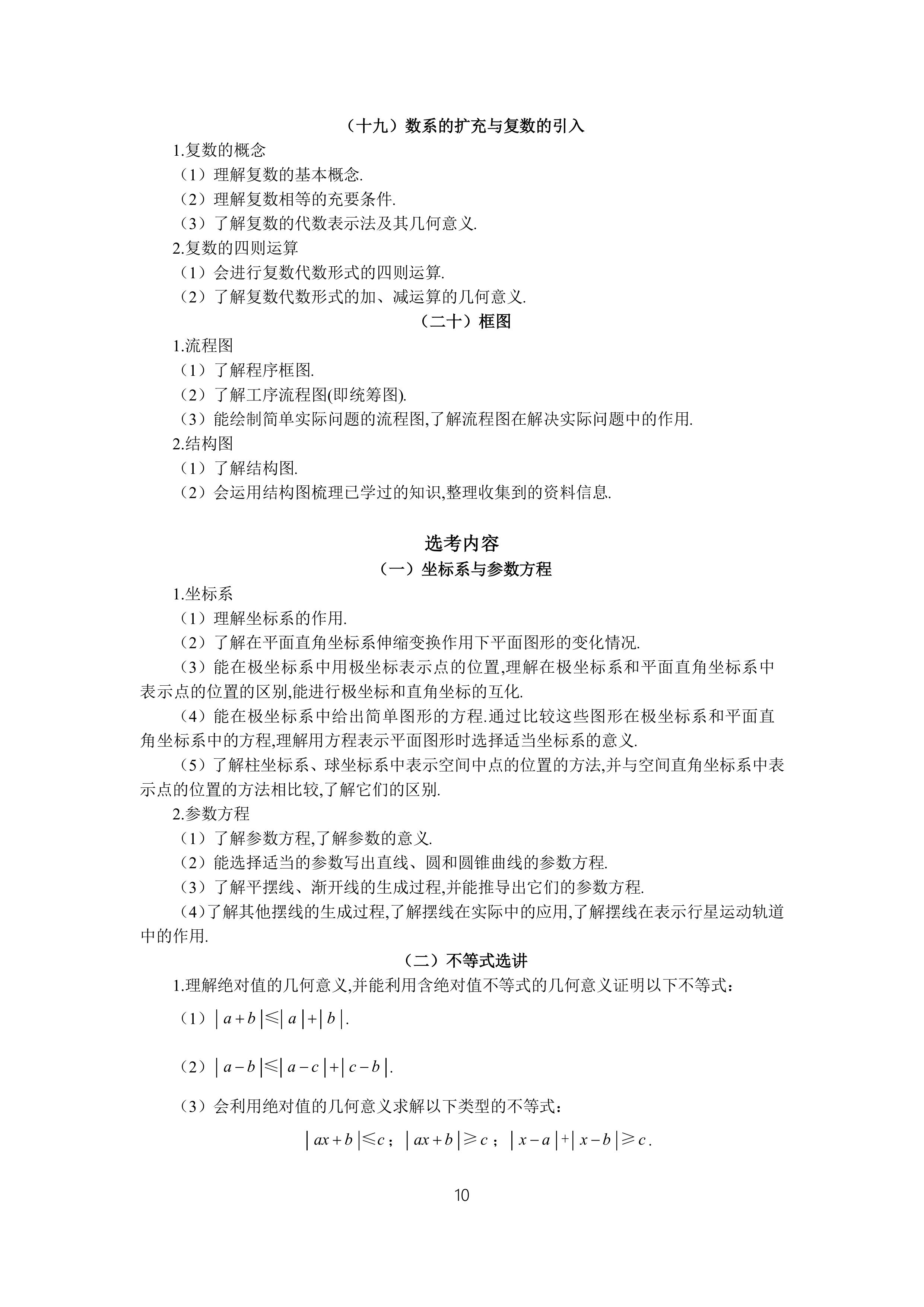2019年普通高等学校招生全国统一考试大纲(文科数学)